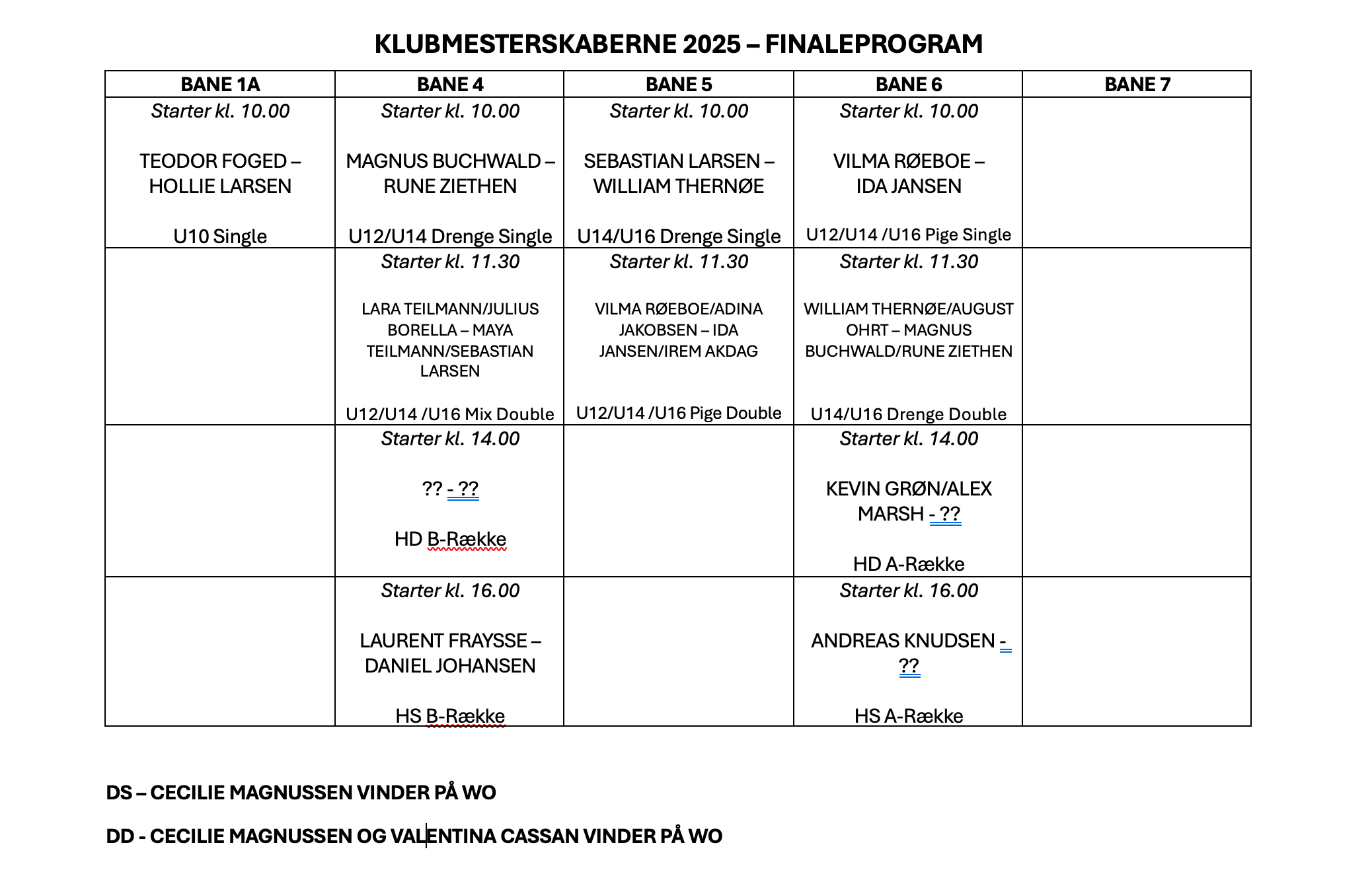 Kampprogram til Klubmesterskaberne (Junior) er klar!